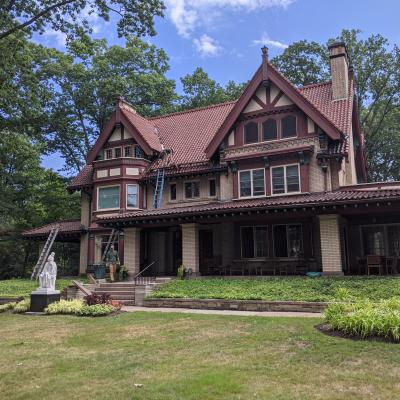 In 2020 Hazlett Roofing completed a major tile roof restoration on a Carmelite Convent Roof in Cleveland Heights. This project involved replacing copper flashing in 4 separate valleys, misc. decking repairs, almost 400 tiles replaced in widely scattered areas and extensive other work. This project was so extensive we had 5 men working on it for almost an entire month. Each valley replaced one at a time, step by step, with challenging access to the repair area. The final valley required the most extensive work to deal with wide spread decking issues.